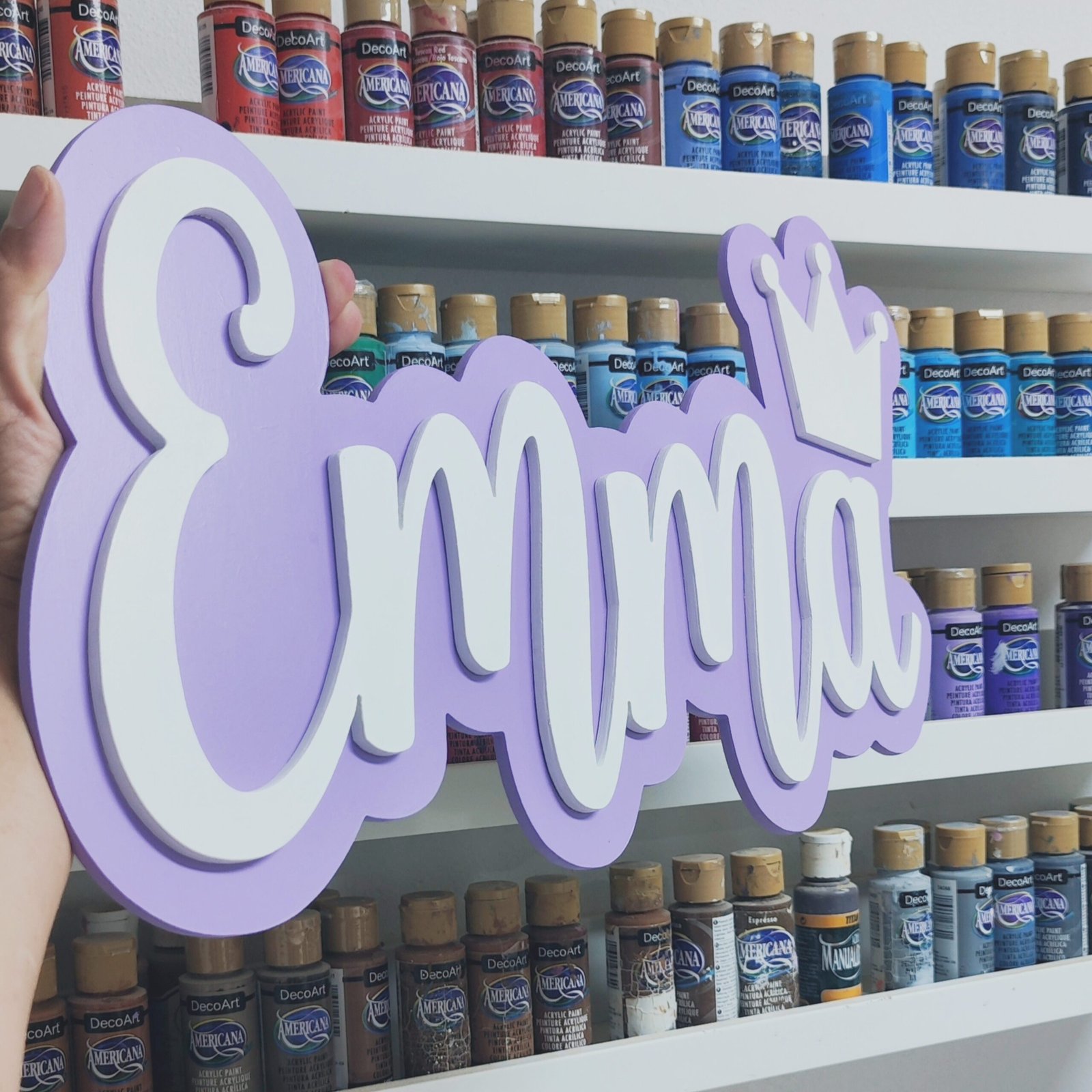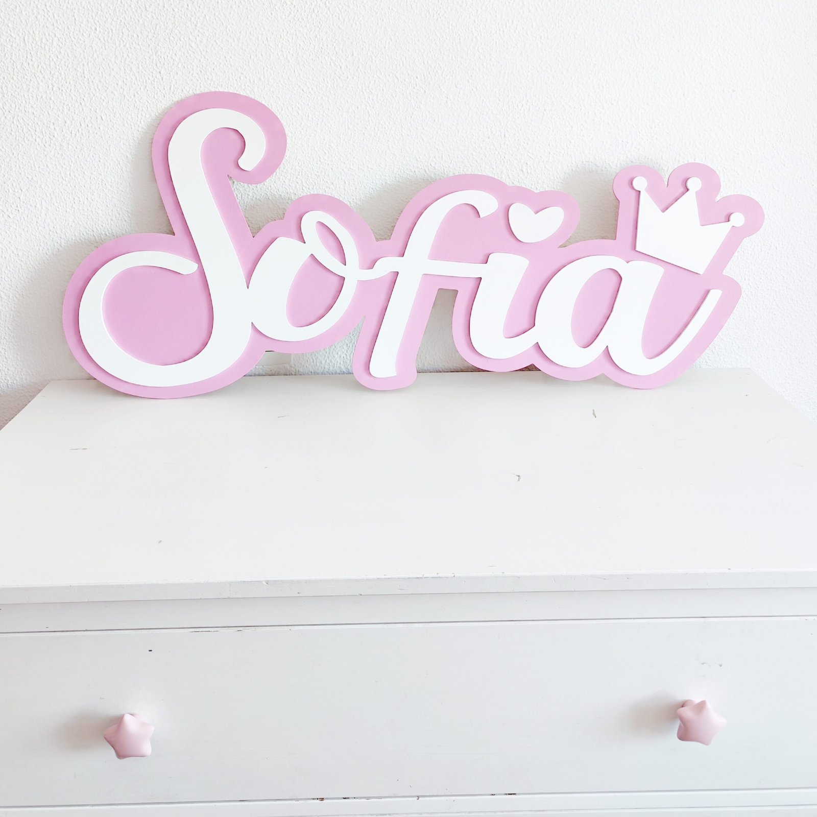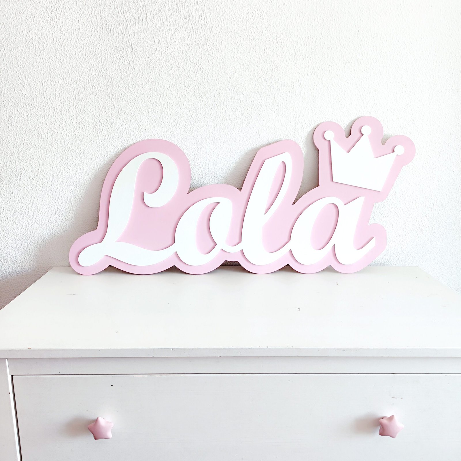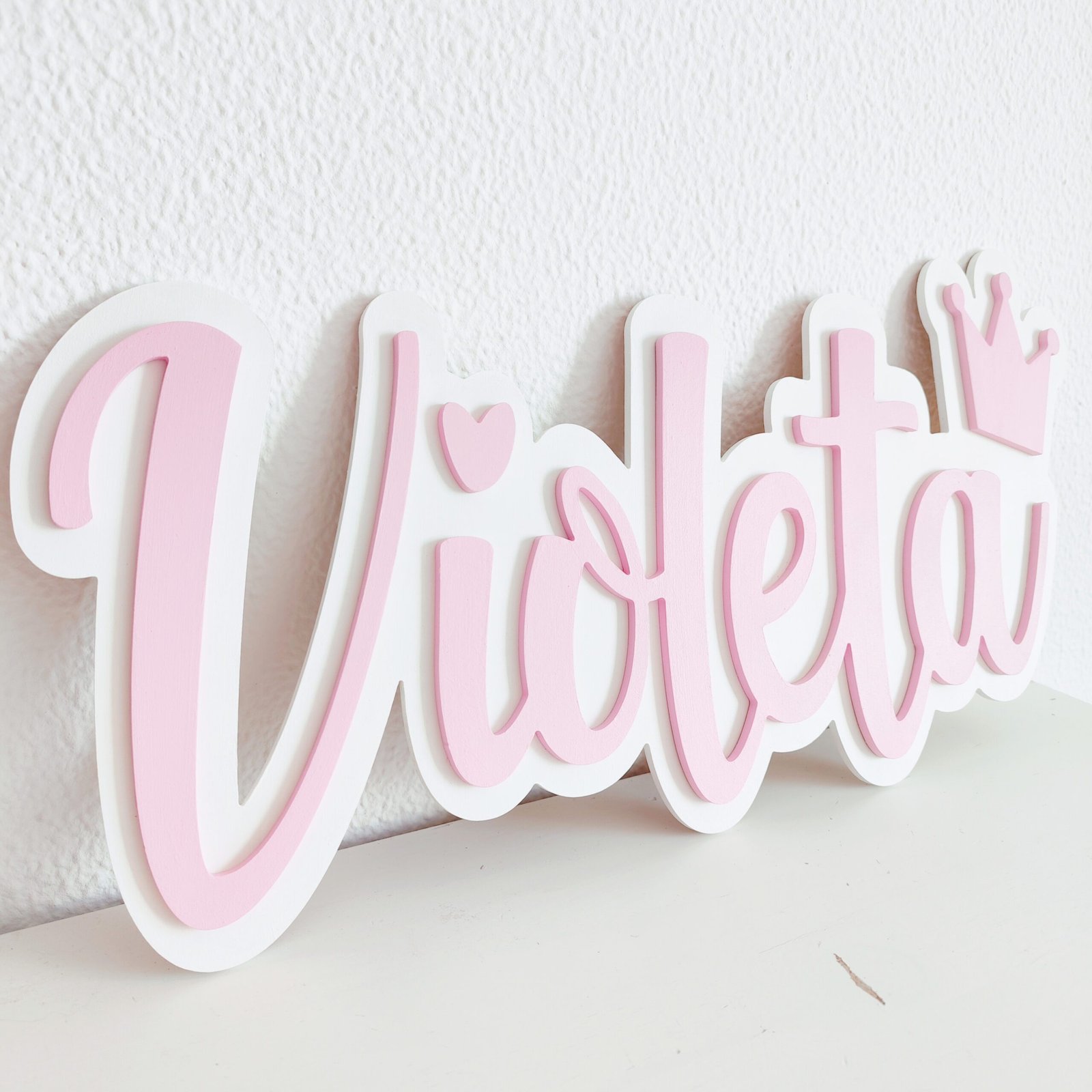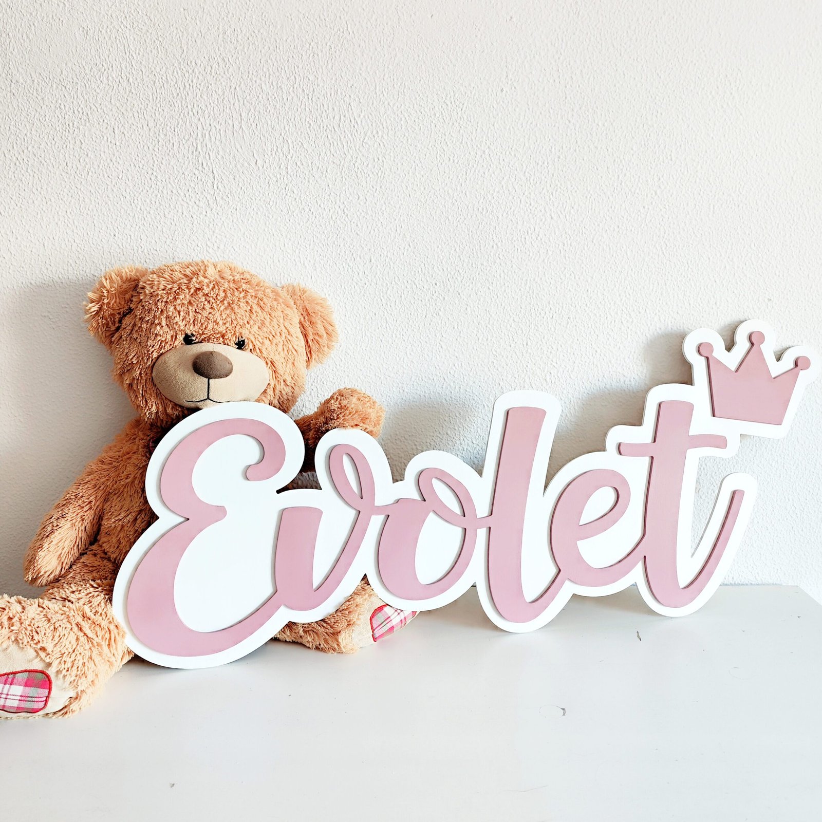 Give your child’s room a unique touch with their embossed wooden name and decorative detail!