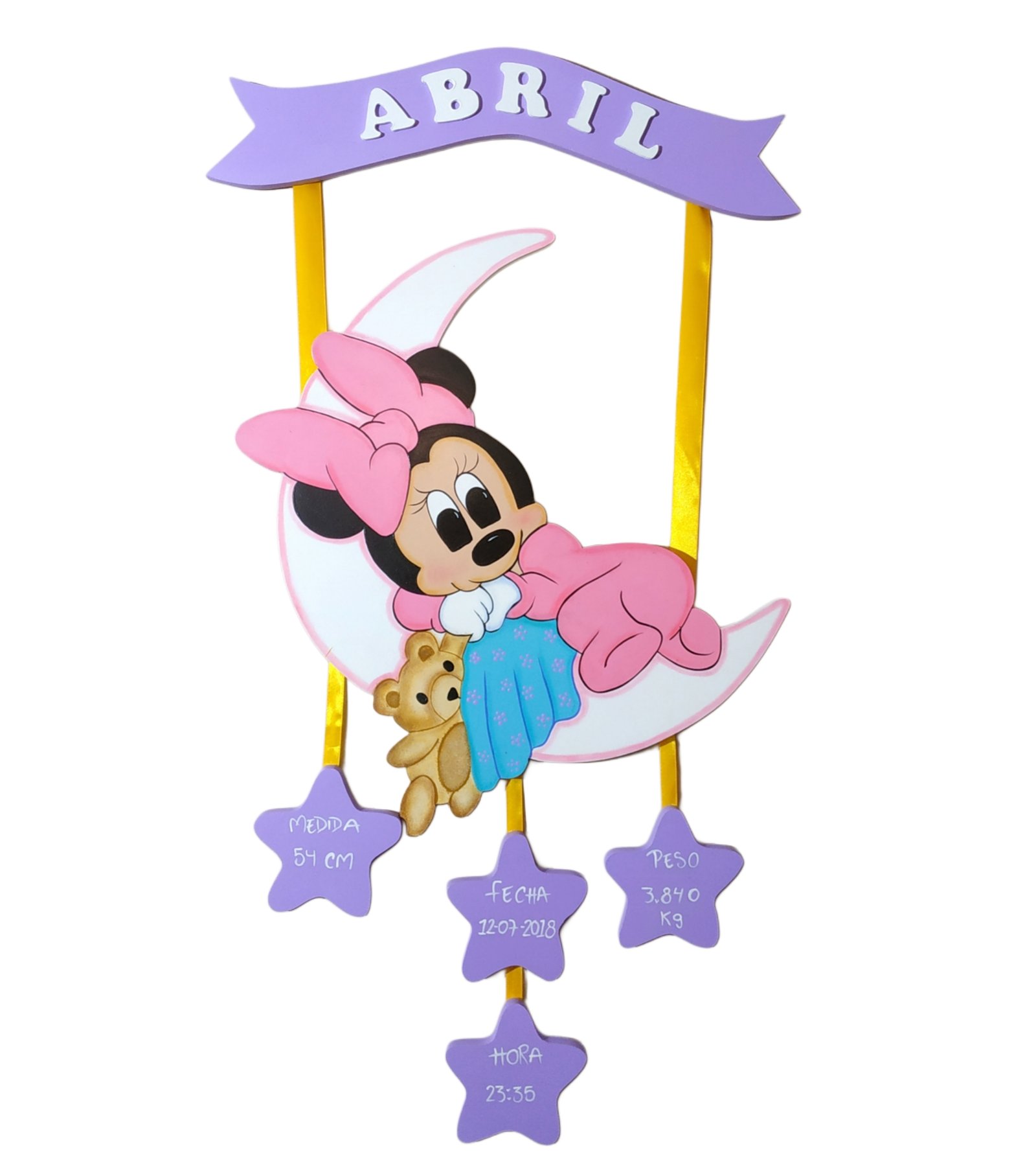 If your baby is as cute as Baby Minnie, this adorable Baby Minnie wooden name plaque will be the perfect addition to their nursery! Handmade with love, it features your little one’s name and birth details engraved on charming wooden stars, creating a keepsake that will last forever.