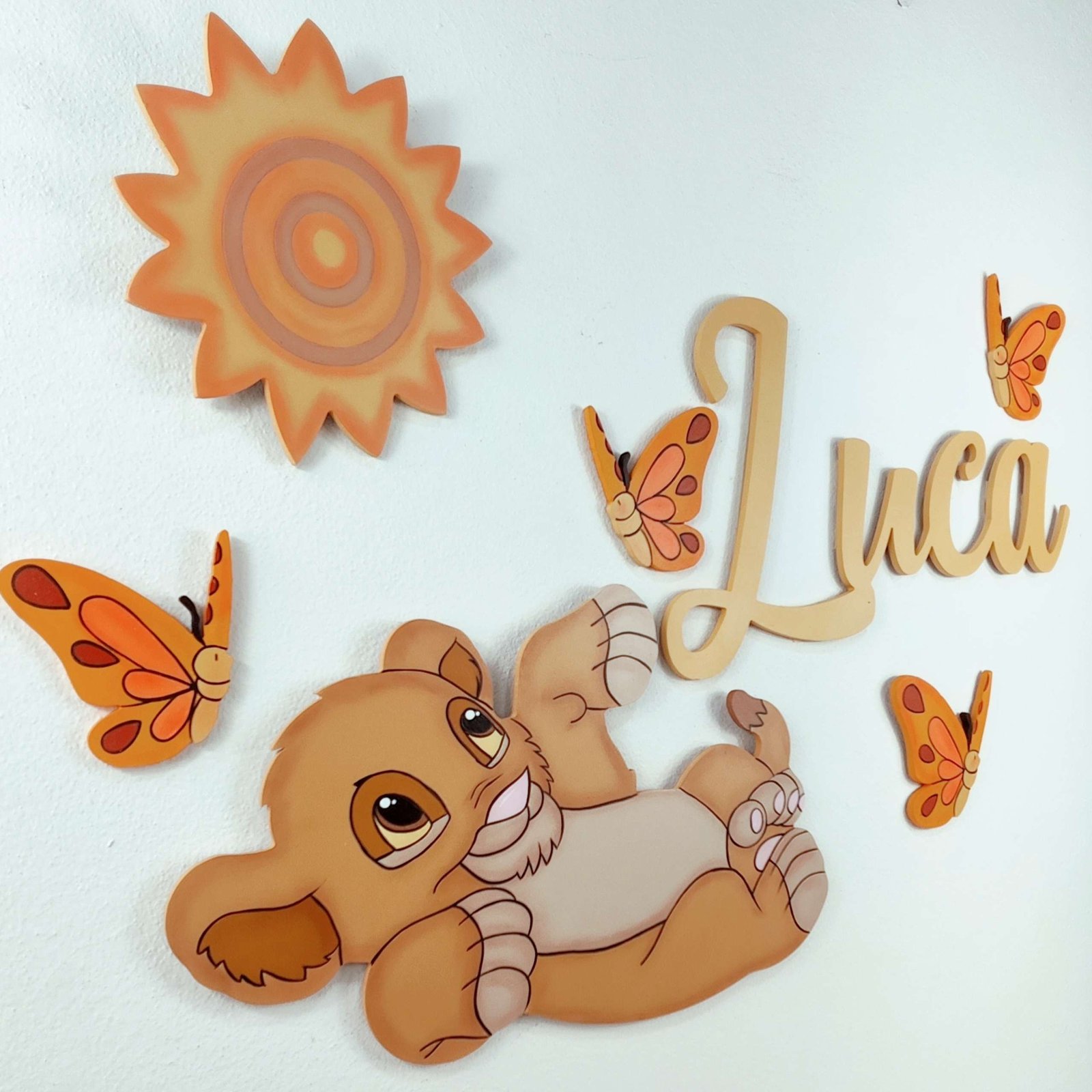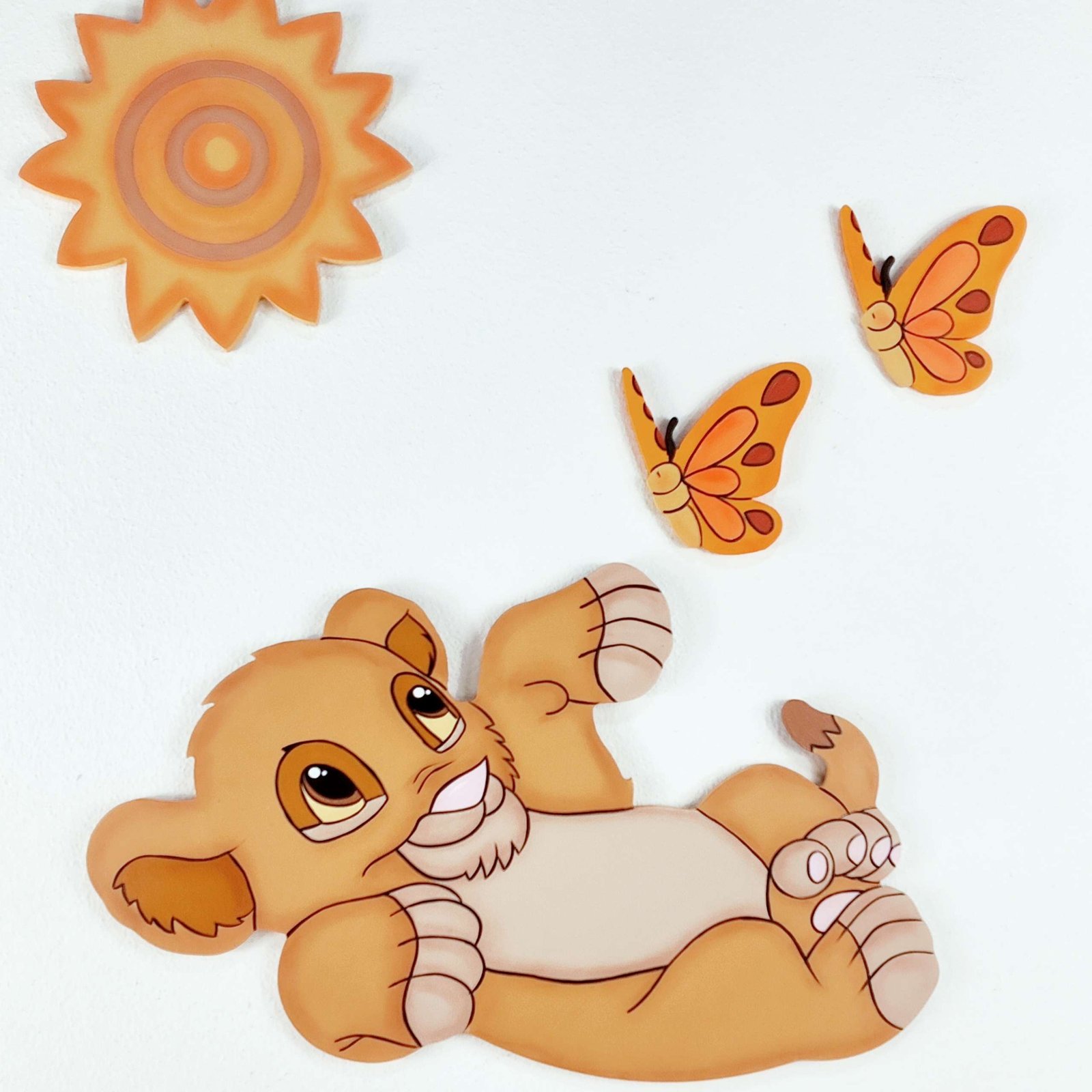 This set includes a Simba silhouette, your little one’s name, the sun, and four butterflies.
