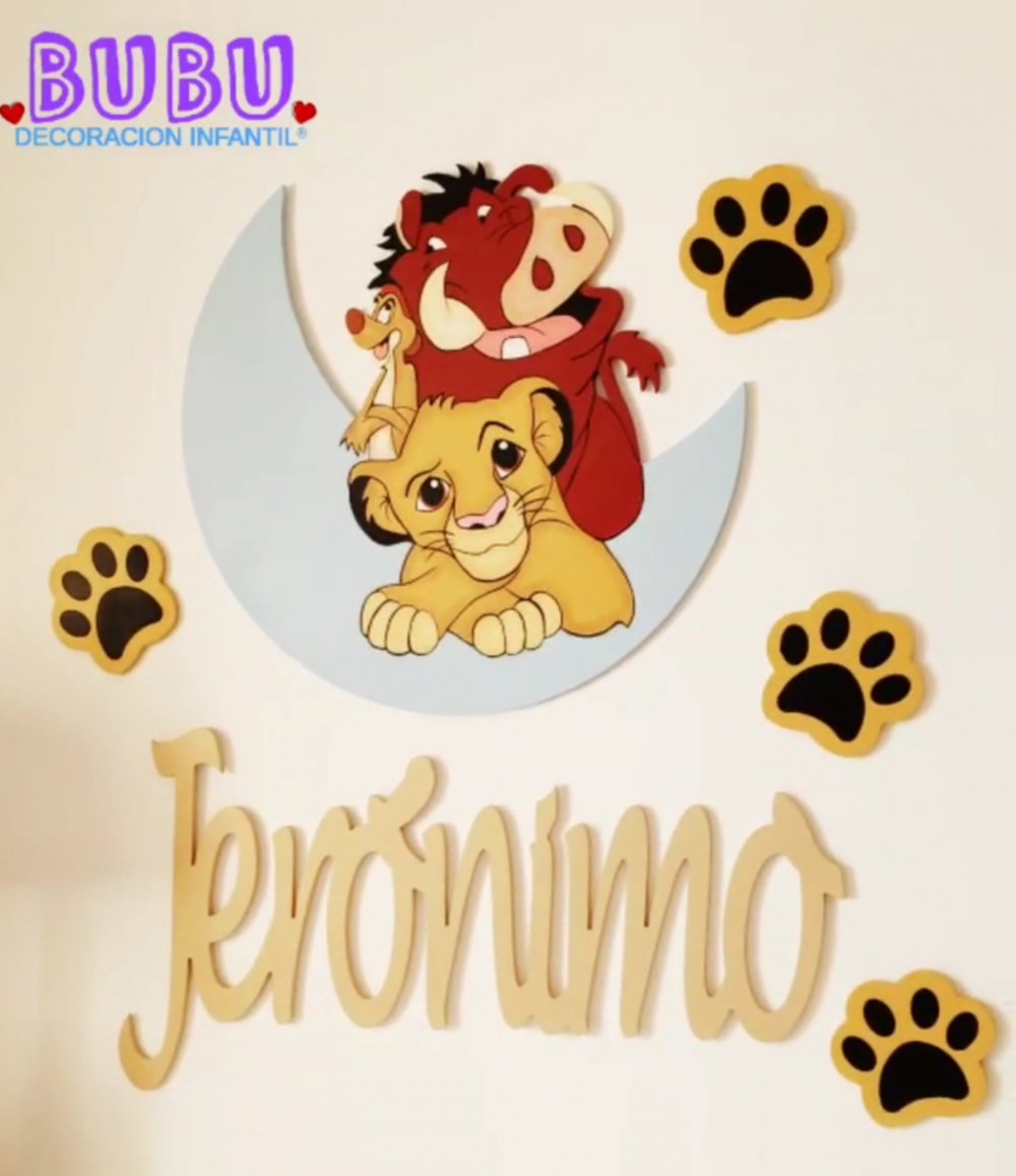 This set includes a moon silhouette with Simba, Timon, and Pumbaa, your little one’s name, and four paw prints.